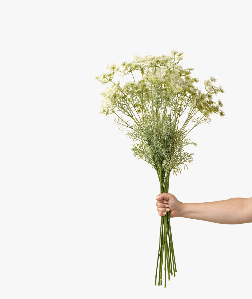 Add lightness and graceful texture to your faux floral arrangements with the Queen Anne's Lace Spray. With delicate flower heads and feathery green stems, this botanical beauty brings a freshly picked feel to your accent decor.
